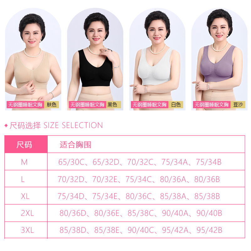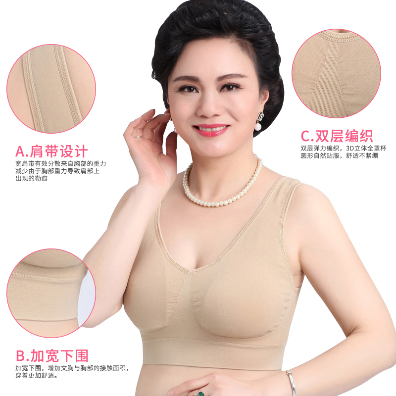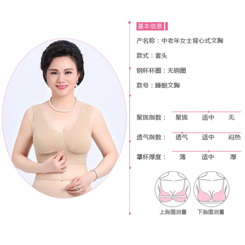 胸罩 妇女运动薄款 妈妈内衣女士文胸中老年人背心式 无钢圈聚拢大码