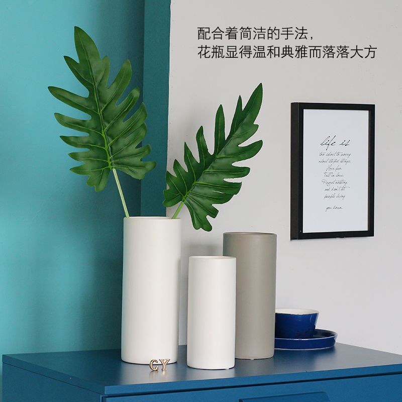 欧式 饰摆件 玫瑰插花花瓶白色简约陶瓷花器客厅餐桌干花鲜花水培装