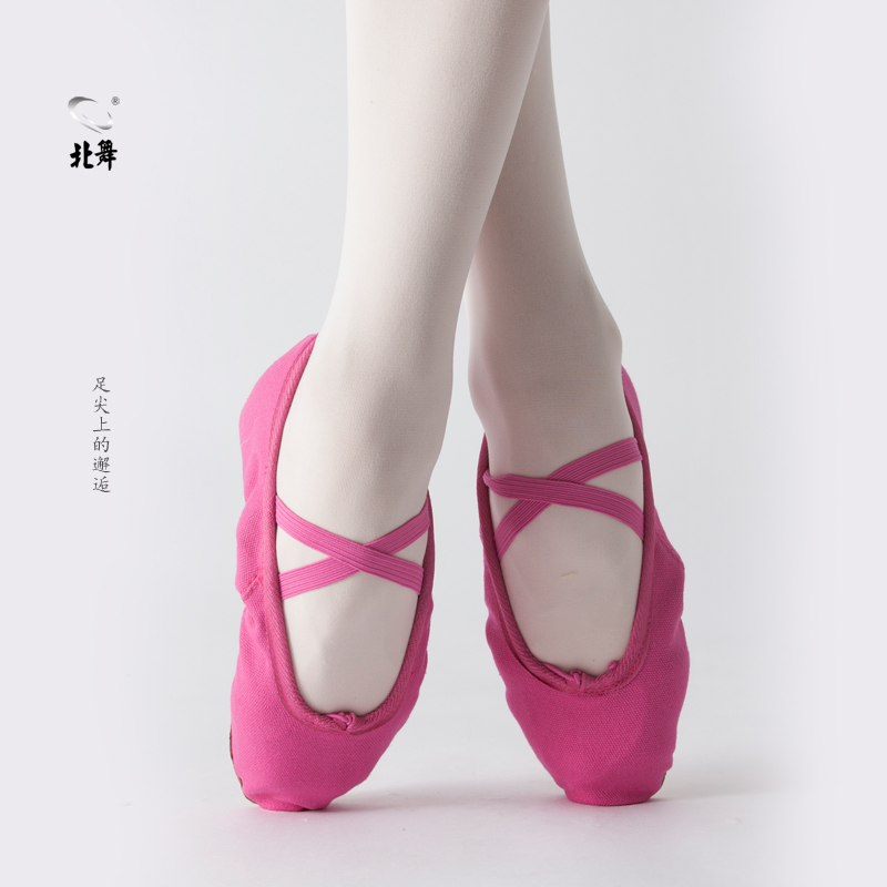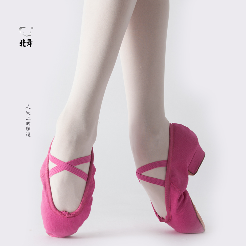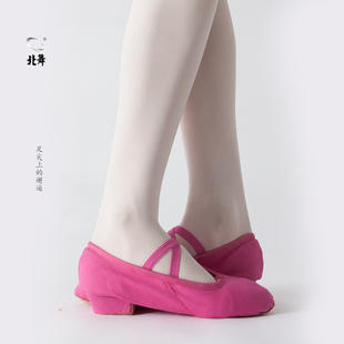 肚皮舞女式 软底女舞鞋 芭蕾舞练功 带跟民族舞蹈鞋 玫红色帆布教师鞋