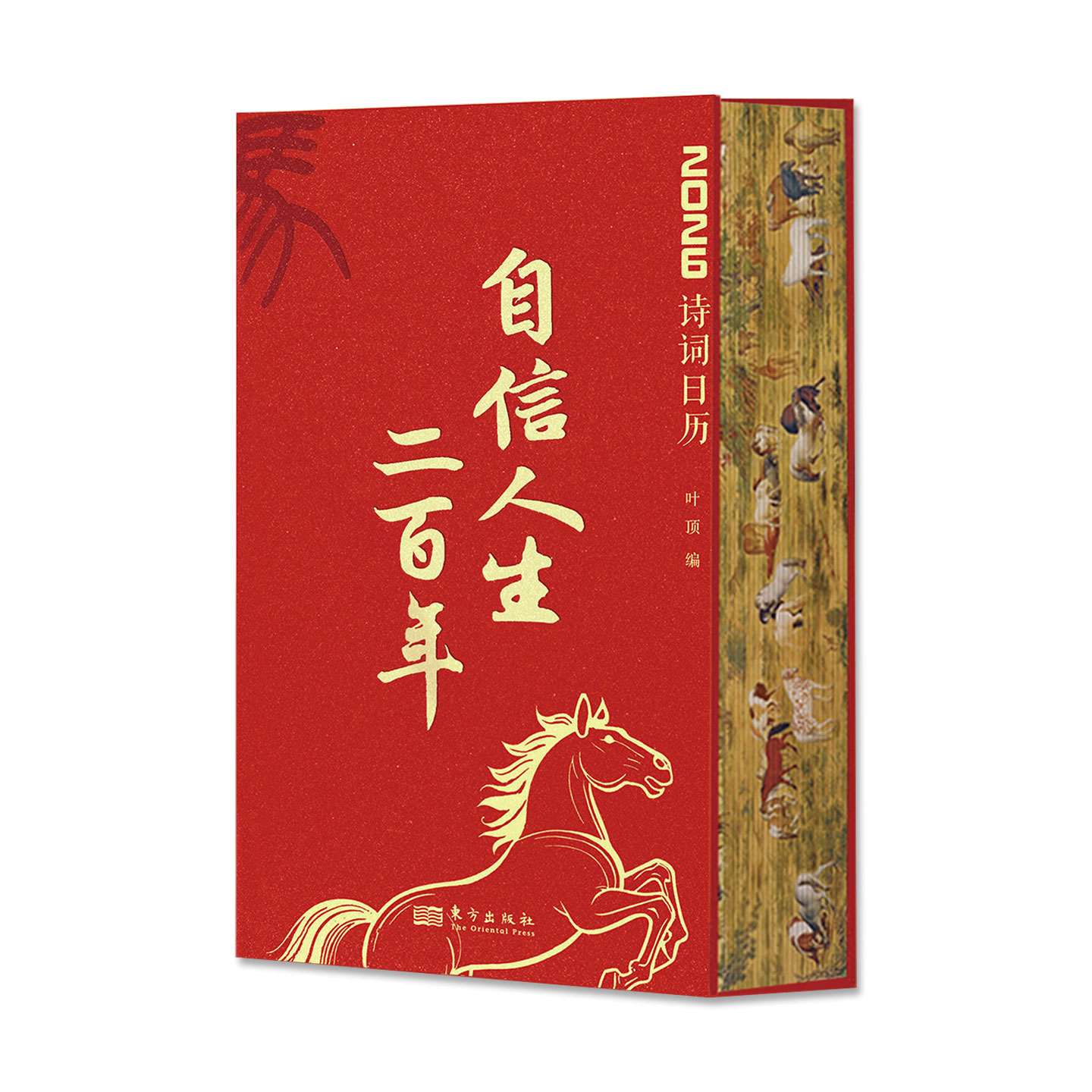 抖音同款 古风古韵传世名画古诗词名言 赠钢笔 2026年诗词日历刷边版 收录徐悲鸿绘制十二生肖图书法练习 自信人生二百年