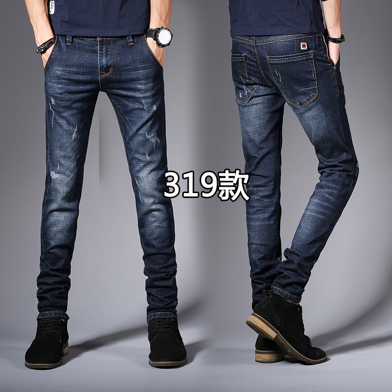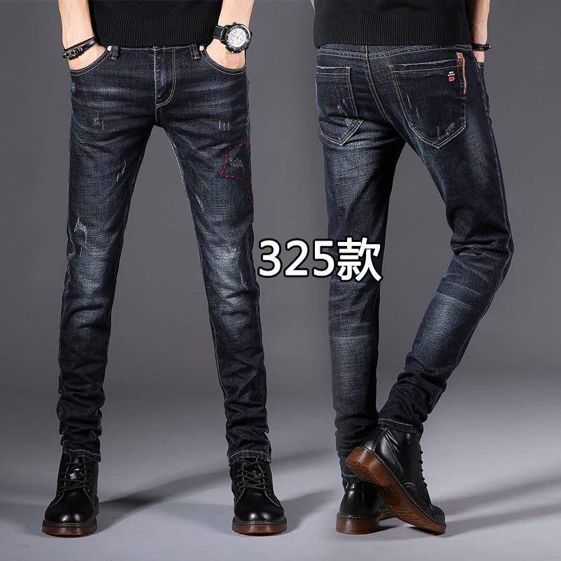 子潮牌弹力韩版 深蓝色秋装 小脚长裤 男春秋修身 潮流百搭 休闲牛仔裤