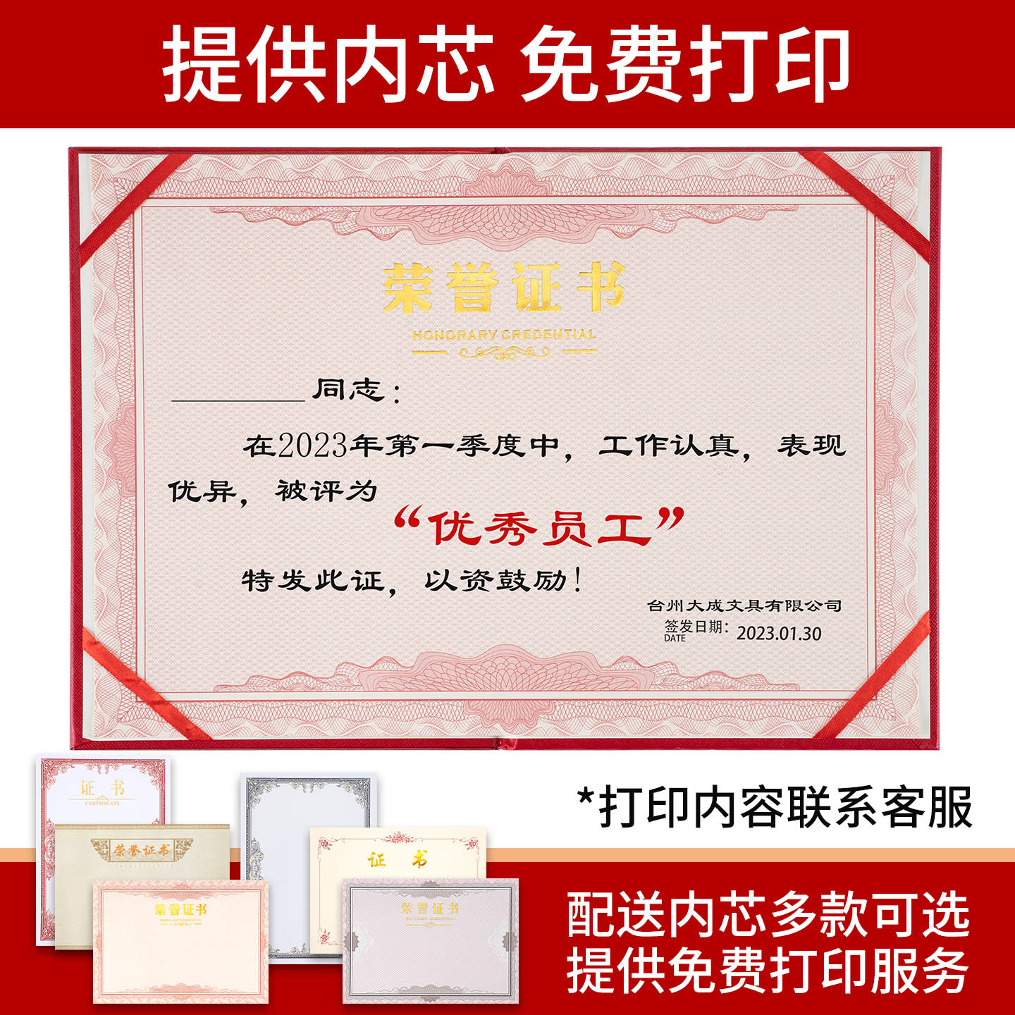 包邮 A4优秀员工获奖颁奖得奖证书奖状外壳封面订做定制作内页内芯可打印批发大12K 款 高档荣誉证书浮雕经典