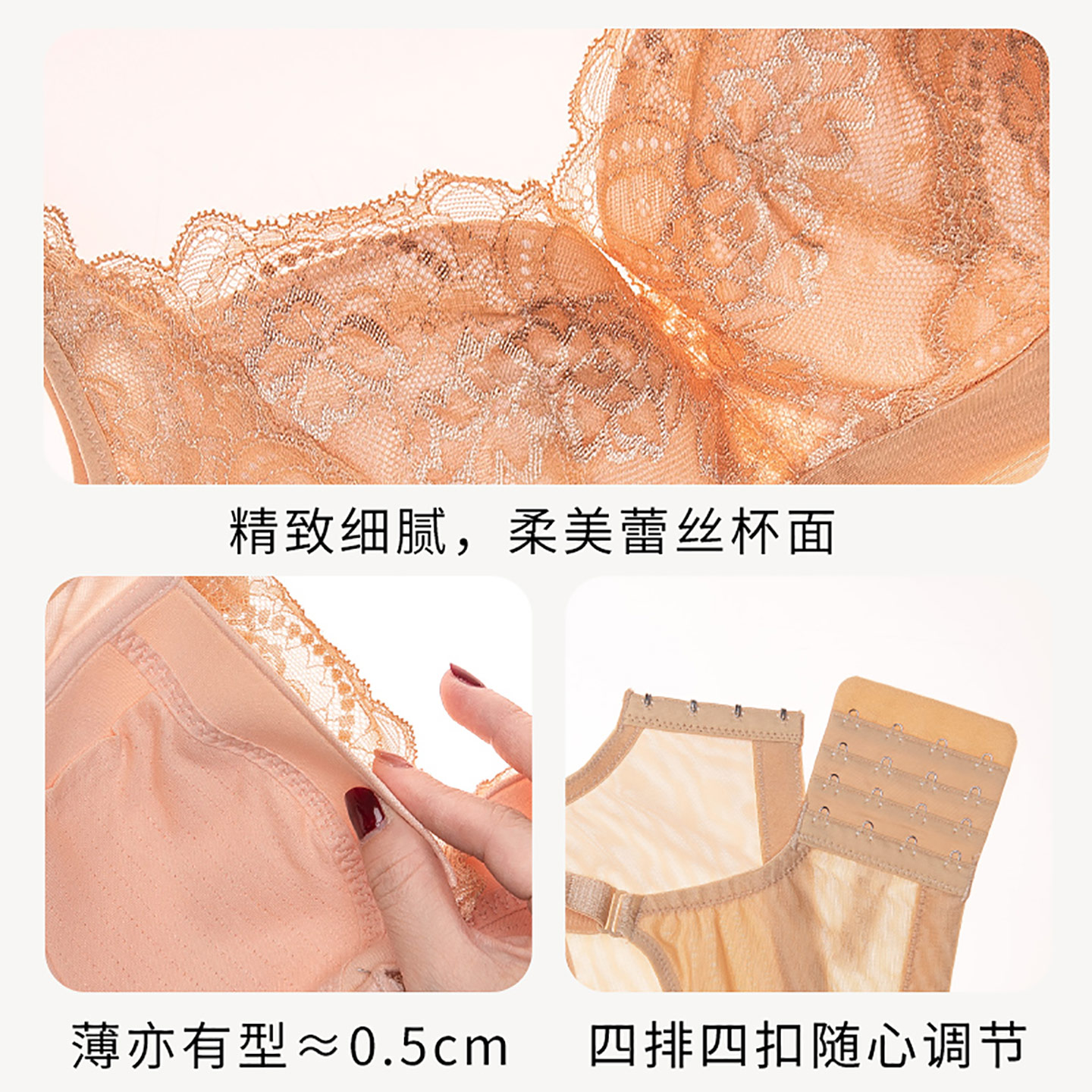 奥维丝丽大码 大胸显小性感蕾丝调整型文胸上托防下垂女 内衣女薄款