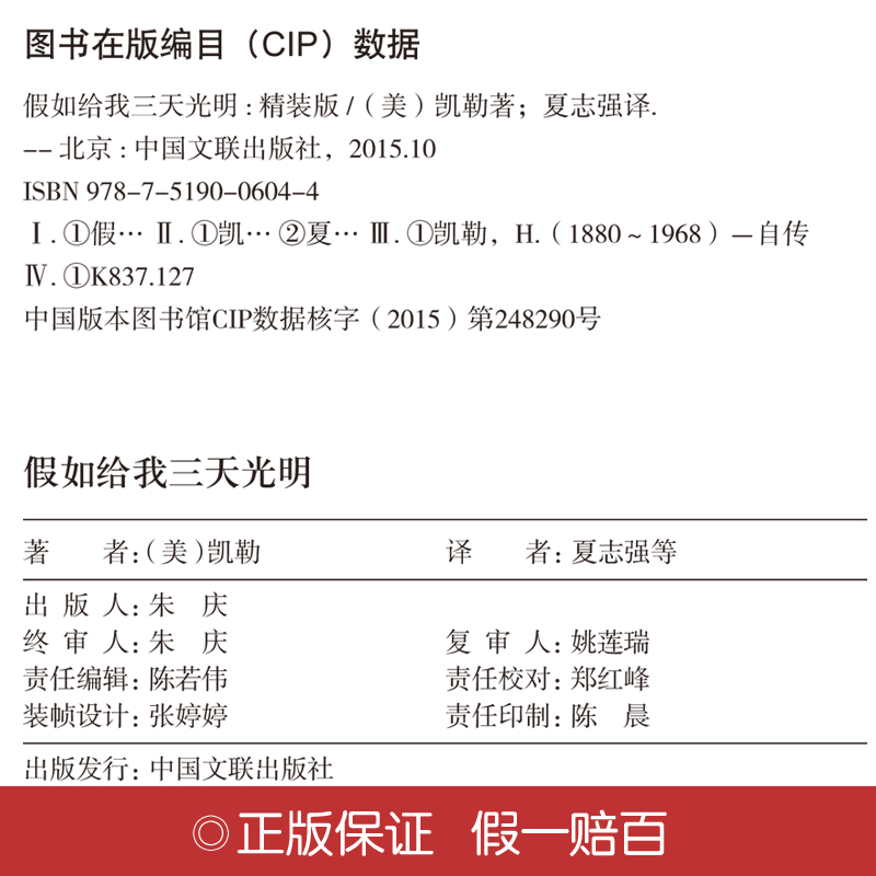 海伦·凯勒名家全译本 畅销9 语文读书目 世界文学名著 15岁少年儿童初中小学生课外读物图书籍 青少版 假如给我三天光明
