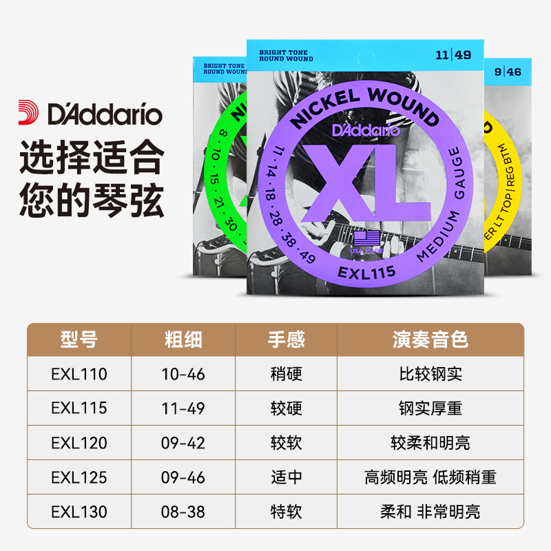 美产达达里奥电吉他琴弦一套6根全套弦线Daddario电吉他弦EXL120