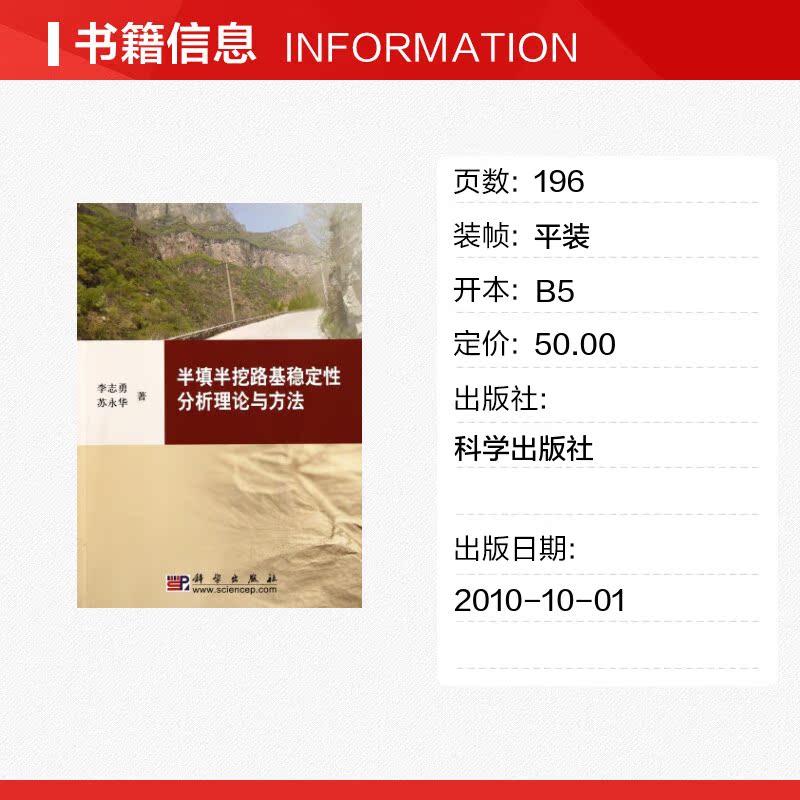 图书籍 社 著 新 专业科技 水利 苏永华 建筑 科学出版 半填半挖路基稳定性分析理论与方法 新华书店正版 李志勇