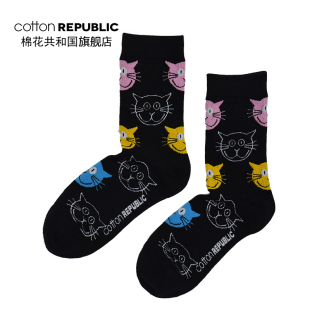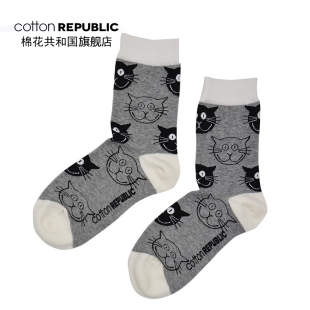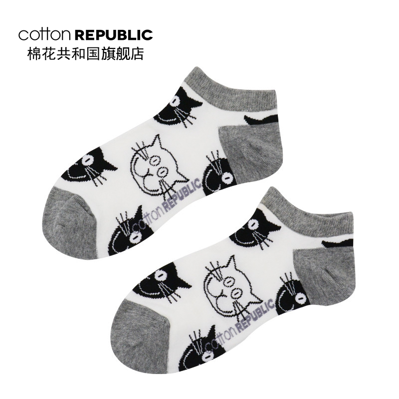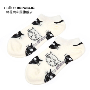 棉花共和国女士浅口船袜中筒袜棉质女袜多色可选可爱小猫提花袜子