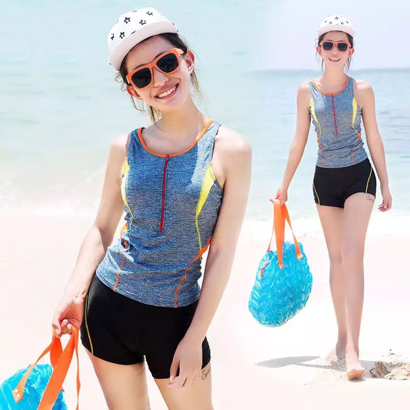 三奇泳衣女分体运动大码 平角小胸聚拢遮肚显瘦保守温泉运动游泳衣