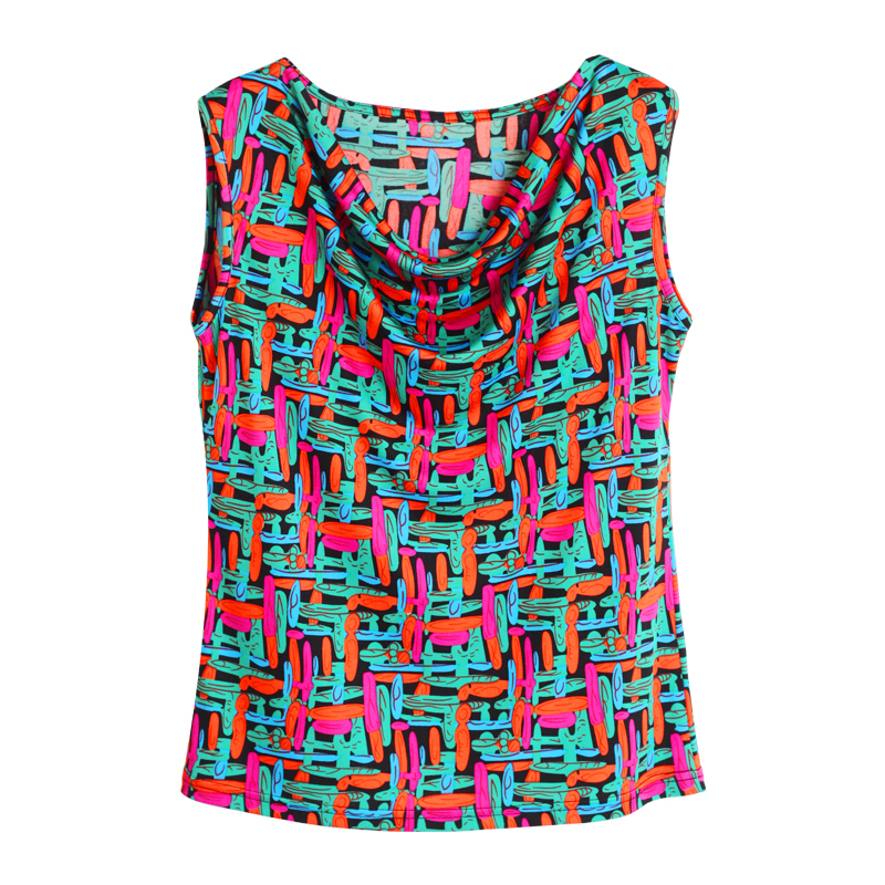 女T恤衫 2025夏装 打底衫 真丝背心印花荡领无袖 桑蚕丝针织上衣 新款