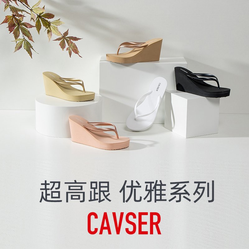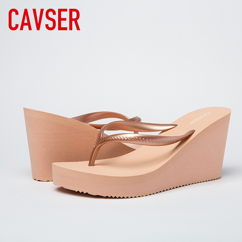 户外 沙滩鞋 CAVSER夏季 女罗马夹脚防滑超高跟人字拖厚底松糕凉拖鞋