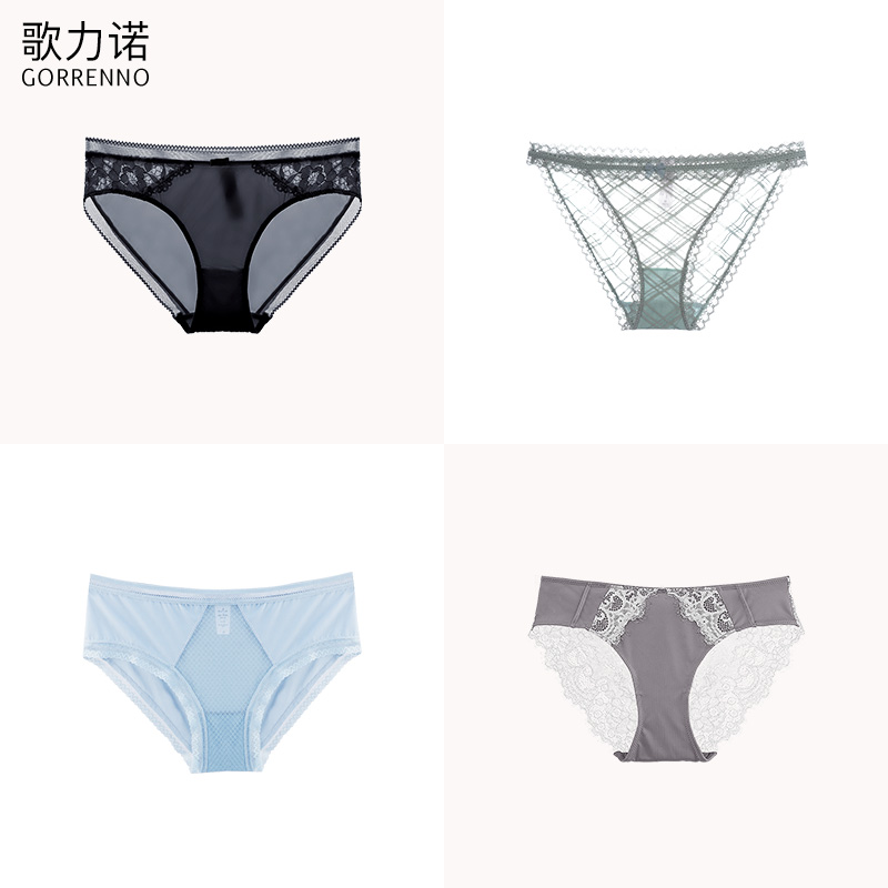 三角裤 歌力诺蕾丝内裤 女士性感纯棉裆平角无痕低腰网纱内衣超薄款