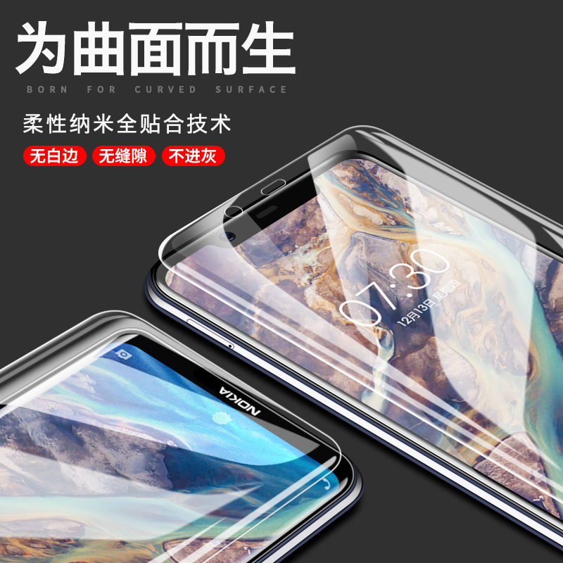 诺基亚x7钢化水凝膜诺基亚x6手机贴膜诺基亚x5全屏覆盖全包无白边原装 抗蓝光防指纹nokia屏保护前后软膜曲面