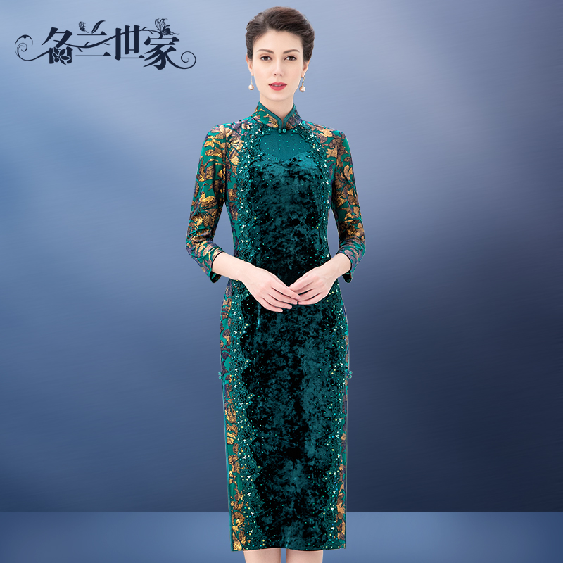 名兰世家品牌年新款 改良旗袍礼服优雅端庄气质高贵妈妈连衣裙 秋装