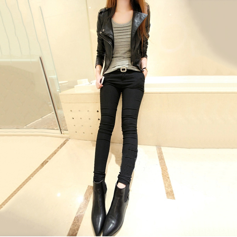 显瘦单排扣长袖 百搭宽松休闲皮衣外套韩版 上衣女口袋 新款 春秋季