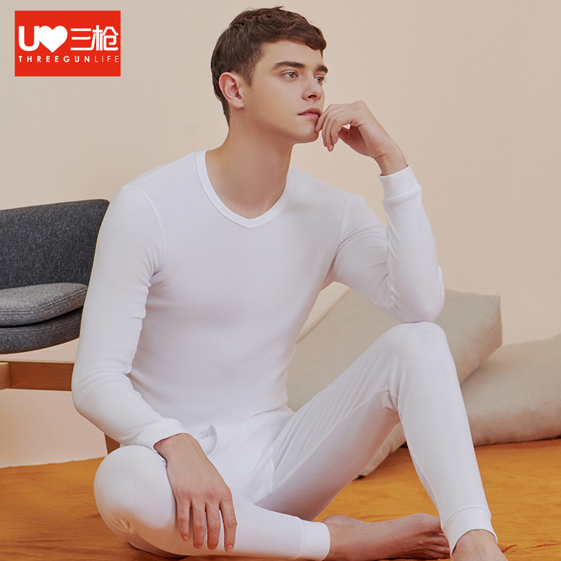 男 秋衣秋裤 秋冬男士 薄款 保暖内衣纯棉基础V领棉毛衫 三枪内衣套装