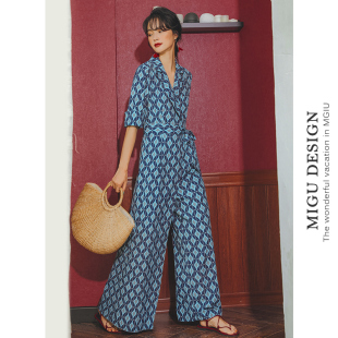 连体裤 冰丝阔腿裤 裙裤 夏季 女波西米亚设计感小众套装 弥古雪纺工装