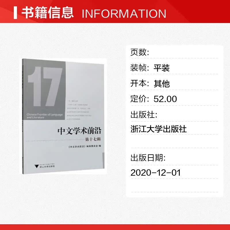 著 社会学文学 新华书店正版 中文学术前沿 浙江大学出版 胡可先 图书籍 社 第十七辑