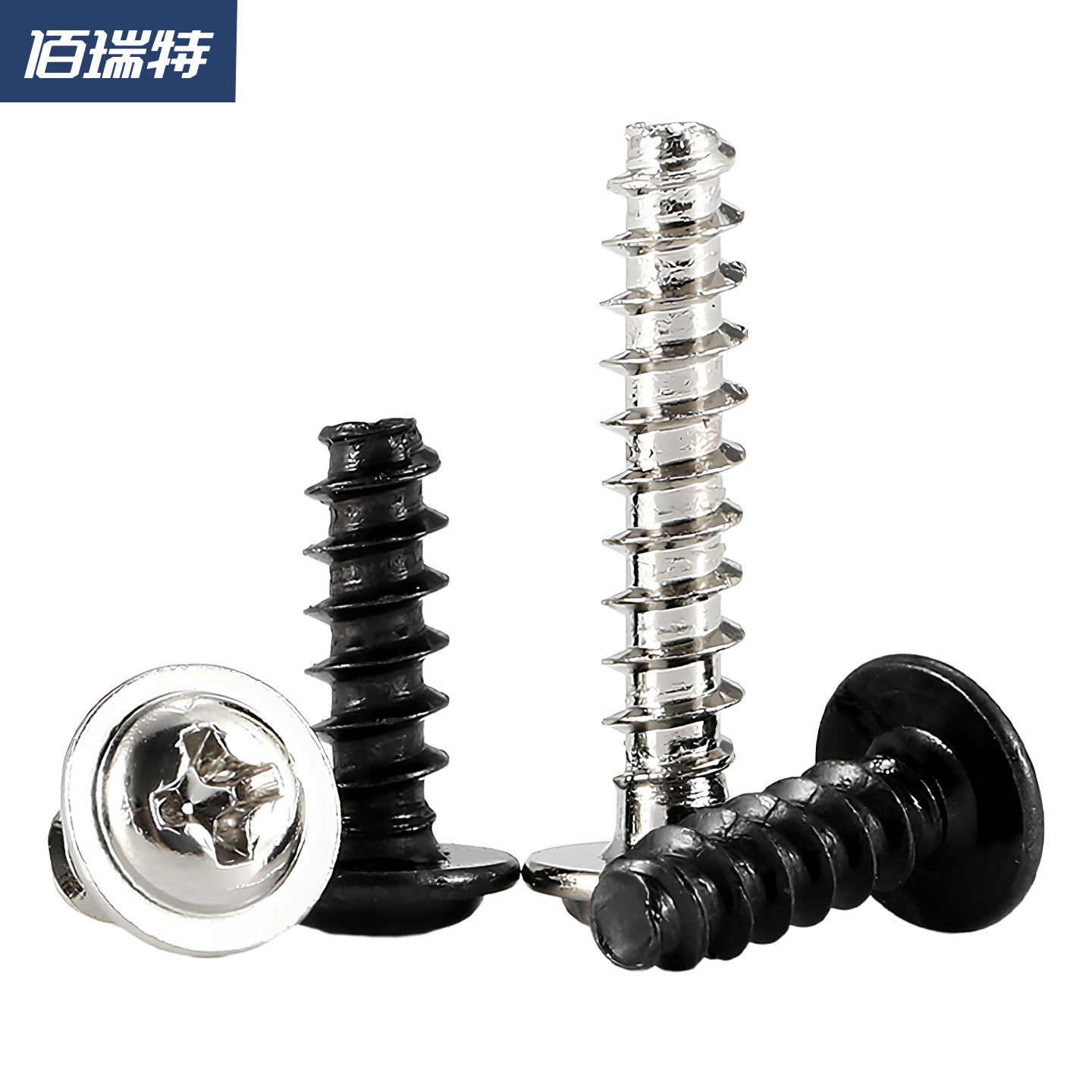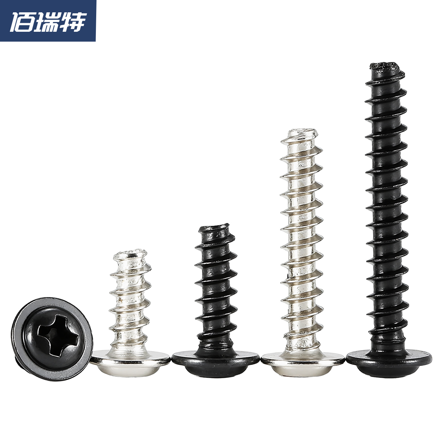 镀镍十字圆头带垫平尾自攻螺丝黑色自攻丝304不锈钢螺钉M1.4 M3M4