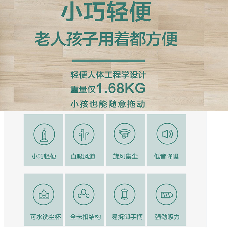 海尔吸尘器家用小型强力大吸力手持推杆式 地板地毯沙发吸尘机正品