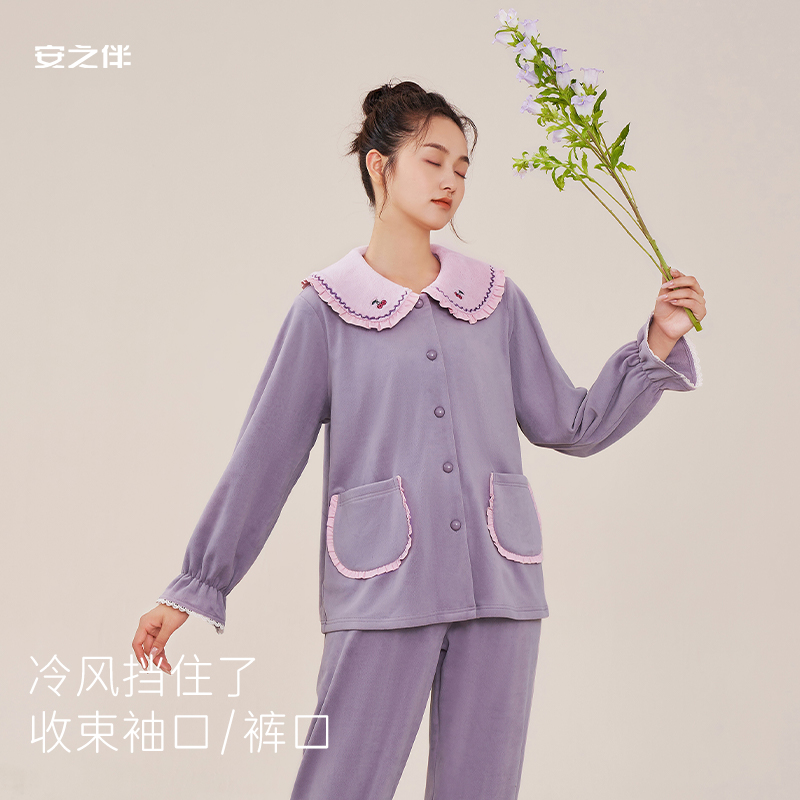 维密宅度假系列奶舒绒睡衣轻柔抗静电保暖家居服套装 女可外穿