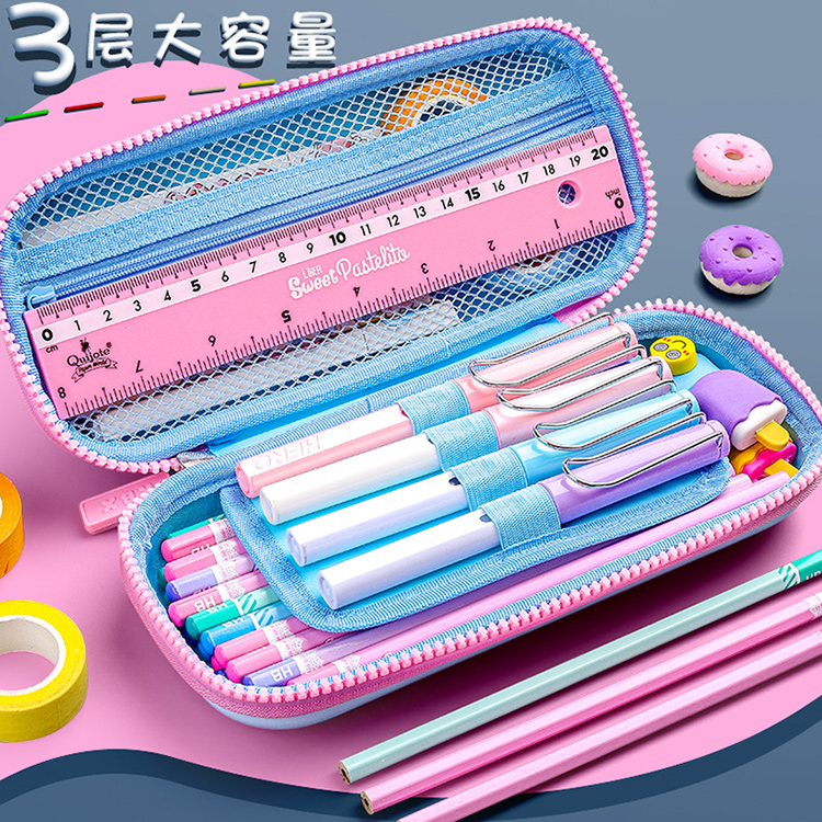得力EVA笔袋男文具盒小学生可爱大容量儿童卡通铅笔文具袋双层幼儿园小学一二三年级多功能学生男女孩笔盒