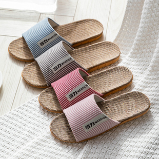 女夏 办公室静音凉拖鞋 回力亚麻拖鞋 男春秋居家用室内防滑防臭四季