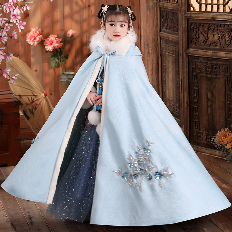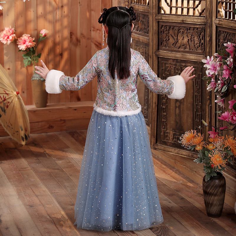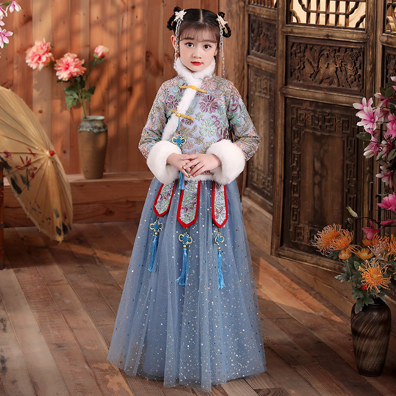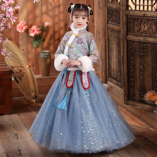 旗袍加绒加厚秋冬装 女童汉服中国风唐装 12岁小女孩宝宝礼服裙长袖