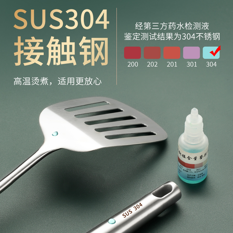 加厚304不锈钢炒菜铲子锅铲煎铲汤勺漏勺防烫柄家用厨具套装 全套