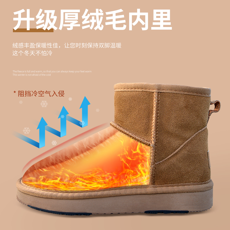 雪地靴女皮毛一体潮牌男女防水防滑羊毛加绒百搭保暖鞋 短中筒棉鞋