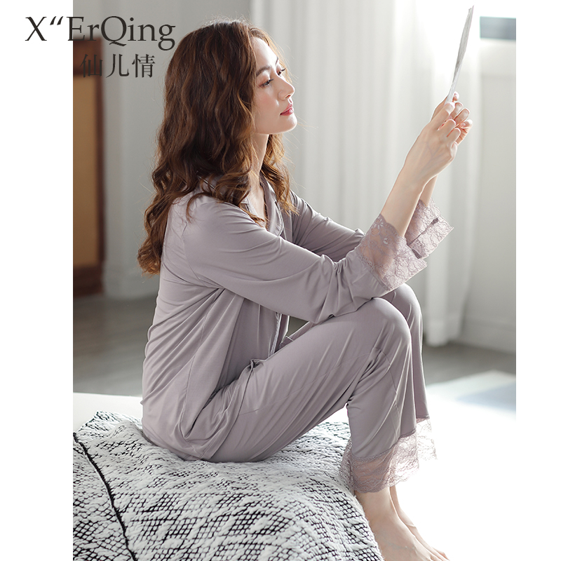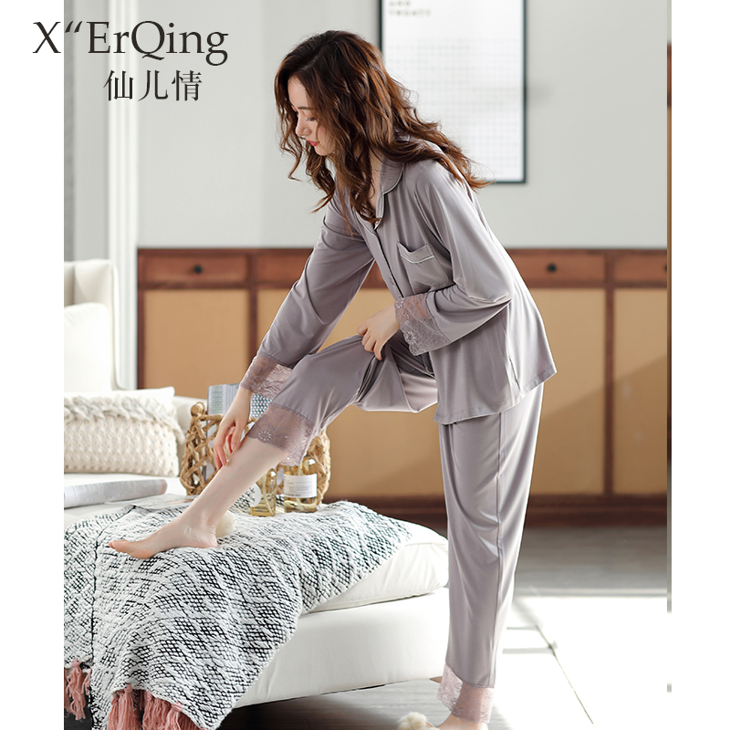 家居服春秋天春季 莫代尔棉绸长袖 韩版 大码 睡衣女士春夏季 套装 薄款