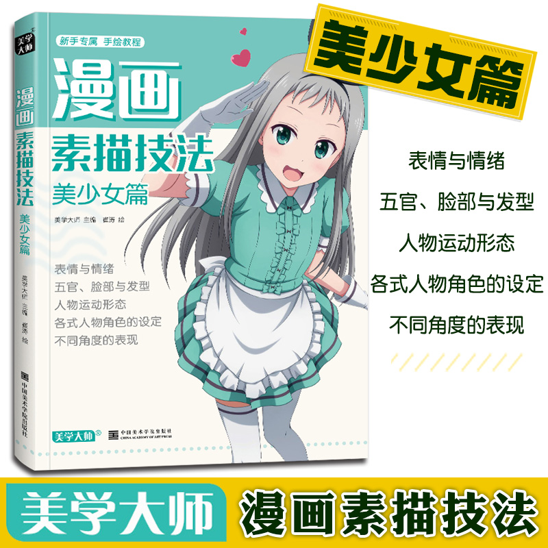 美学大师漫画素描技法美少女篇初学入门零基础新手绘书籍卡通动漫Q版 画册集五官发型动态角色设定成人美术教材 美少男古风人物古装