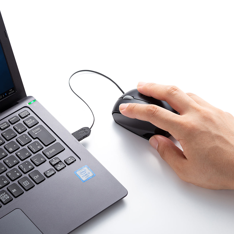 日本SANWA自动伸缩有线鼠标电脑type c接口Mac男女小鼠标免驱pro