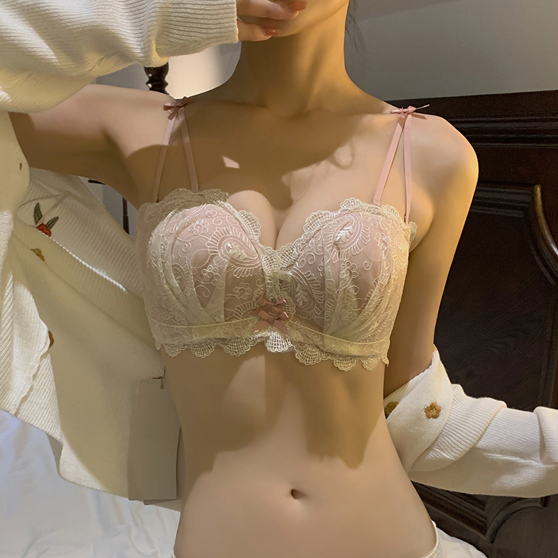 乳胶内衣女小胸聚拢无钢圈胸罩上托防下垂纯欲蕾丝少女风文胸套装