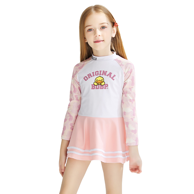 B.Duck小黄鸭儿童泳衣分体2024新款 连体裙防晒游泳衣 公主女孩长袖