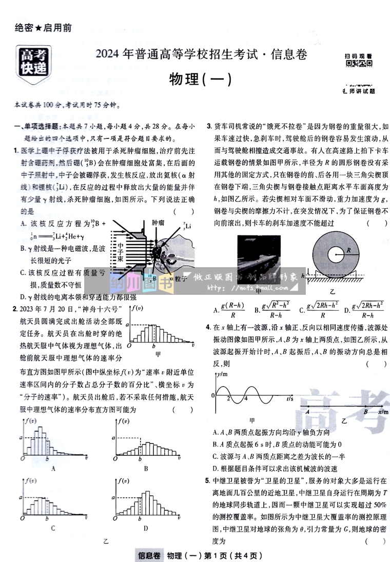 万向思维2024高考快递信息卷8套物理新高考专用名校教材必刷真题考点训练试题综合模拟测试押题预测原创考试卷高中备考总复习资料