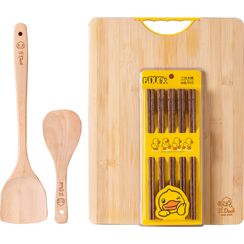 B.duck小黄鸭鸡翅木筷子家用竹木锅铲合金筷榉木剁肉砧板组合套装