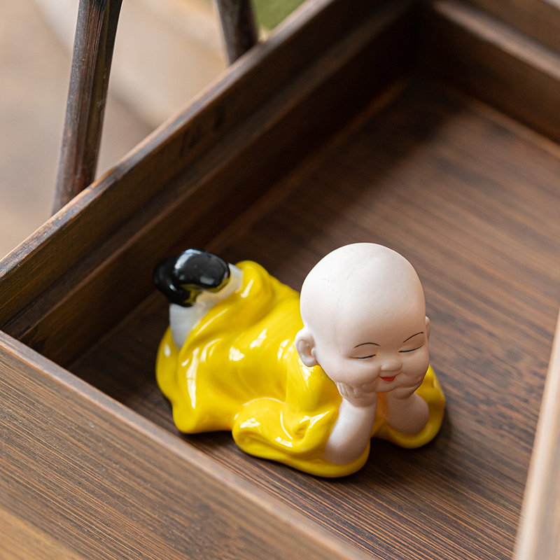 创意精品陶瓷茶宠摆件禅意精品小和尚茶桌面茶道装 饰园艺花盆造景