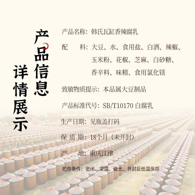 韩氏瓦缸210g香辣腐乳下饭酱香浓郁传统发酵