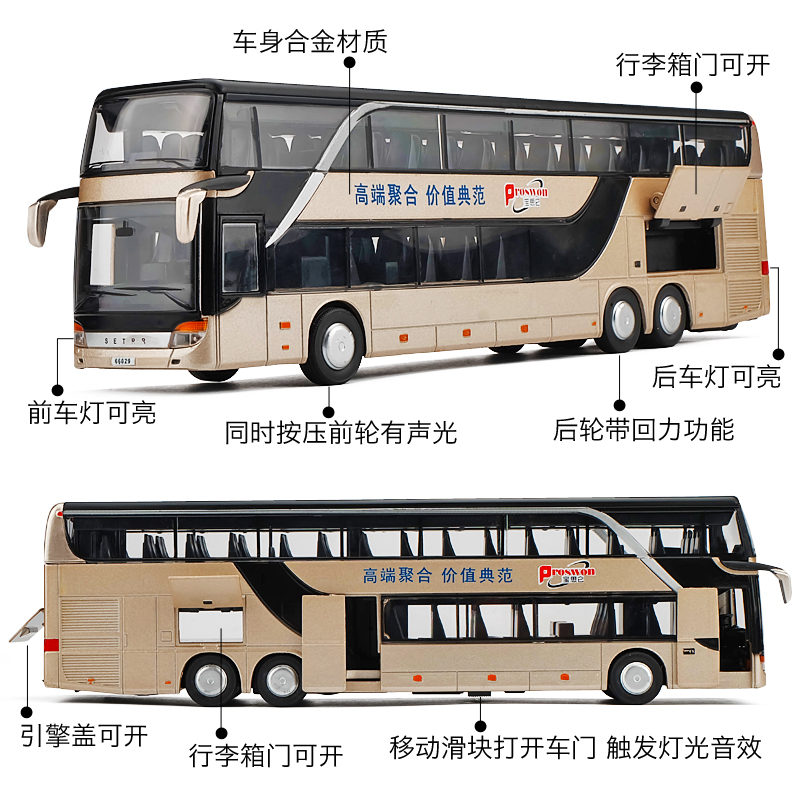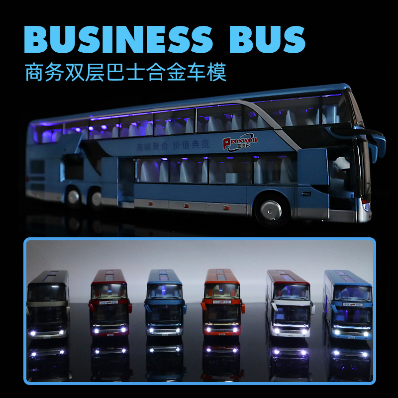 大号合金双层商务巴士玩具模型仿真长途大巴车儿童汽车男孩玩具车