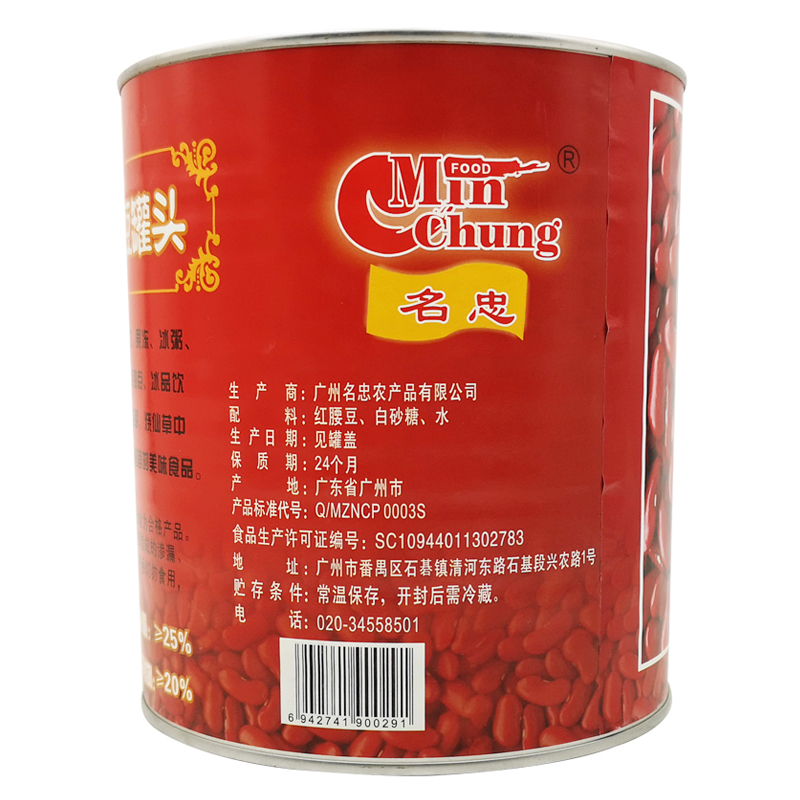 名忠糖水红腰豆罐头3.2kg 奶茶店专用大罐商用 即食蜜豆熟红豆罐装