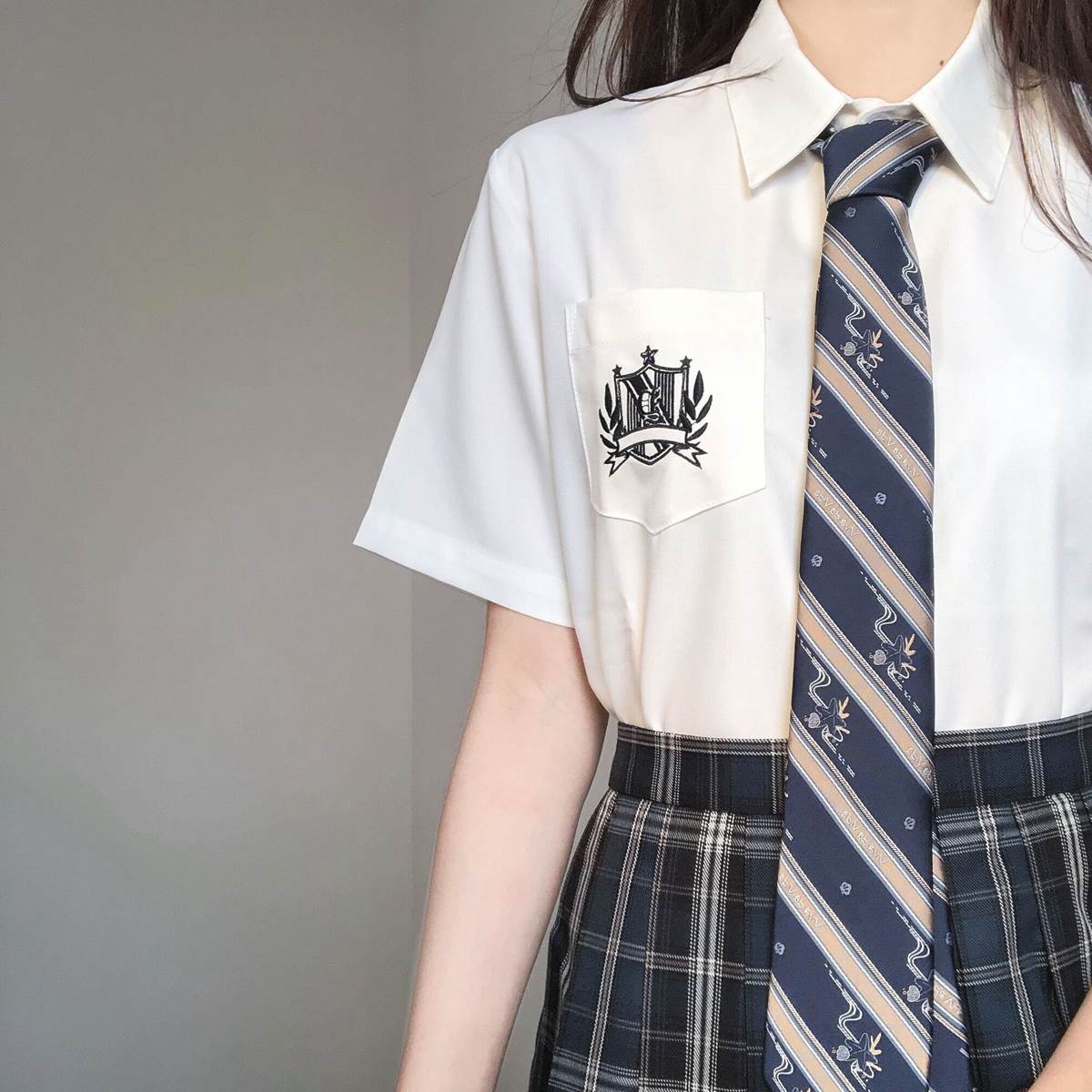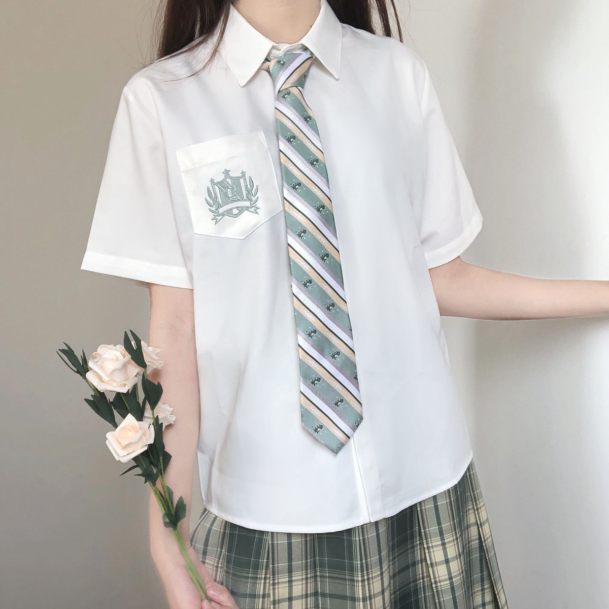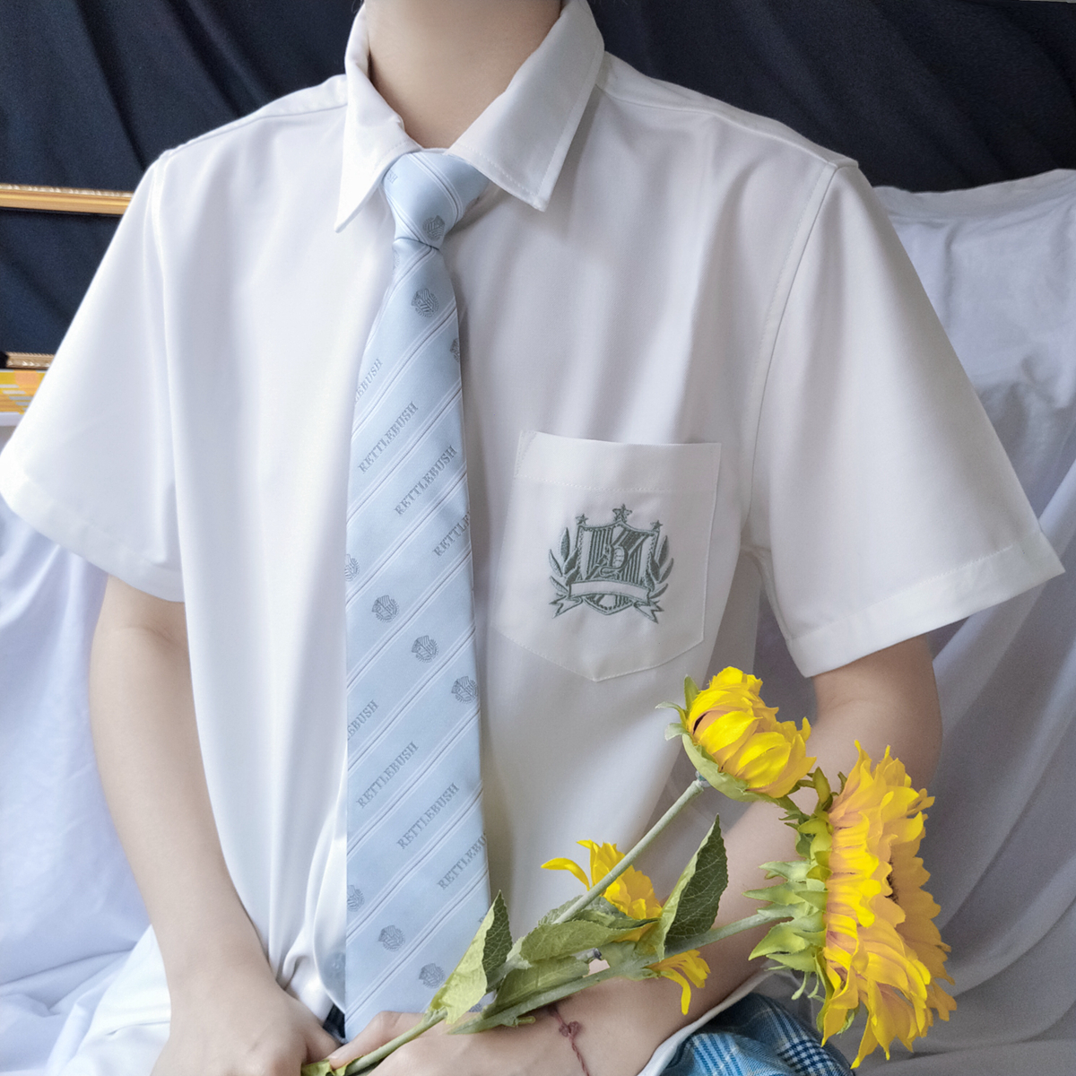 刺绣立领白色衬衫 原创日系jk制服短袖 水星高 女夏季 刺篇