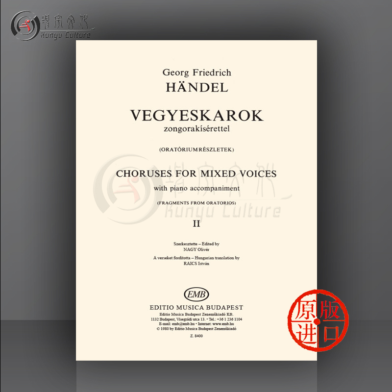 Friedrich 布达佩斯原版 Voices1 Mixed Choruses Georg Handel 进口乐谱书 全套共一至三卷 亨德尔混声合唱集声乐和钢琴