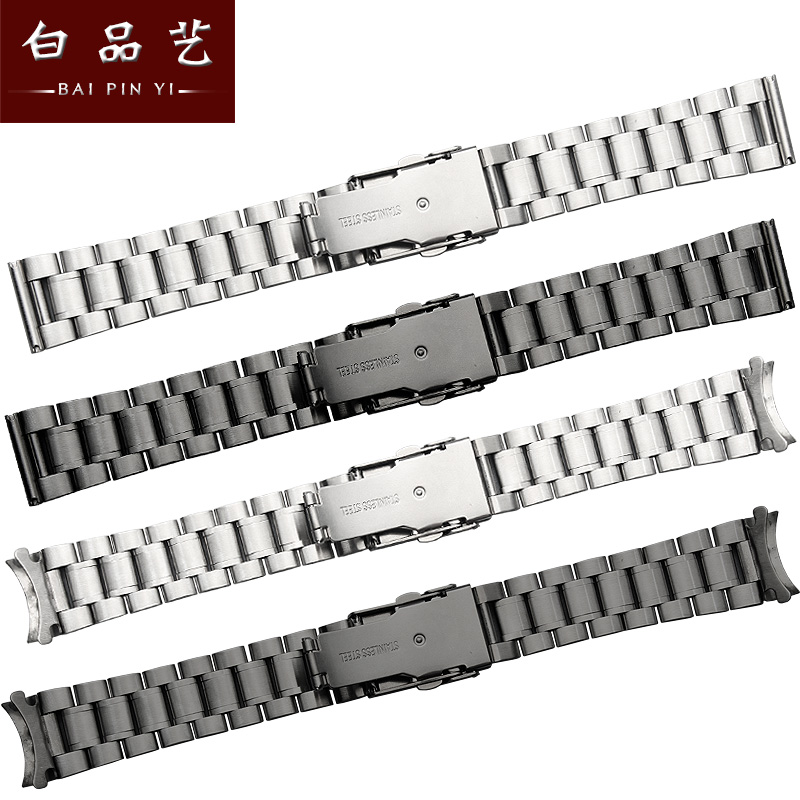 实心不锈钢双保险表带适配西铁城精工东方双狮上海弧口手表带20mm