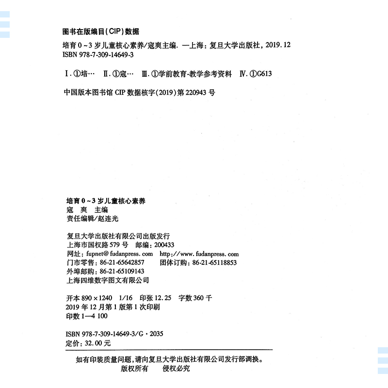 社 培育0 复旦大学出版 寇爽主编 学前教育教学参考资料 3岁儿童核心素养