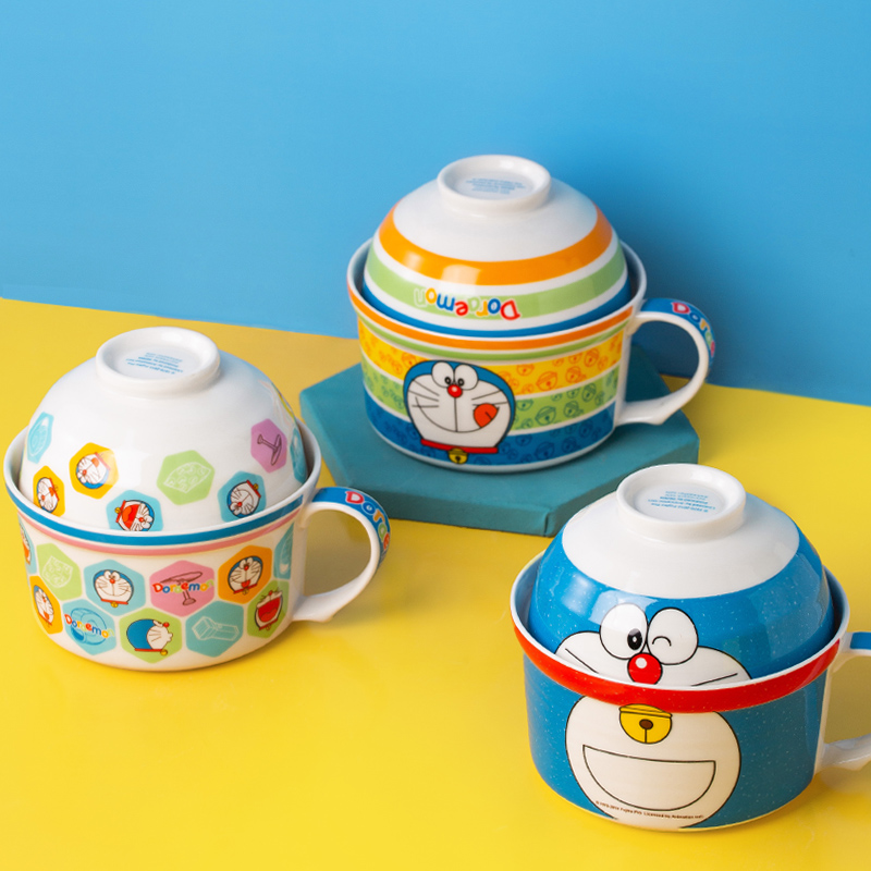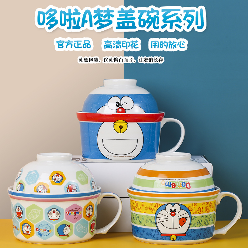 泡面碗学生用宿舍带盖陶瓷碗个人专用饭盒食堂打饭手柄面碗筷套装