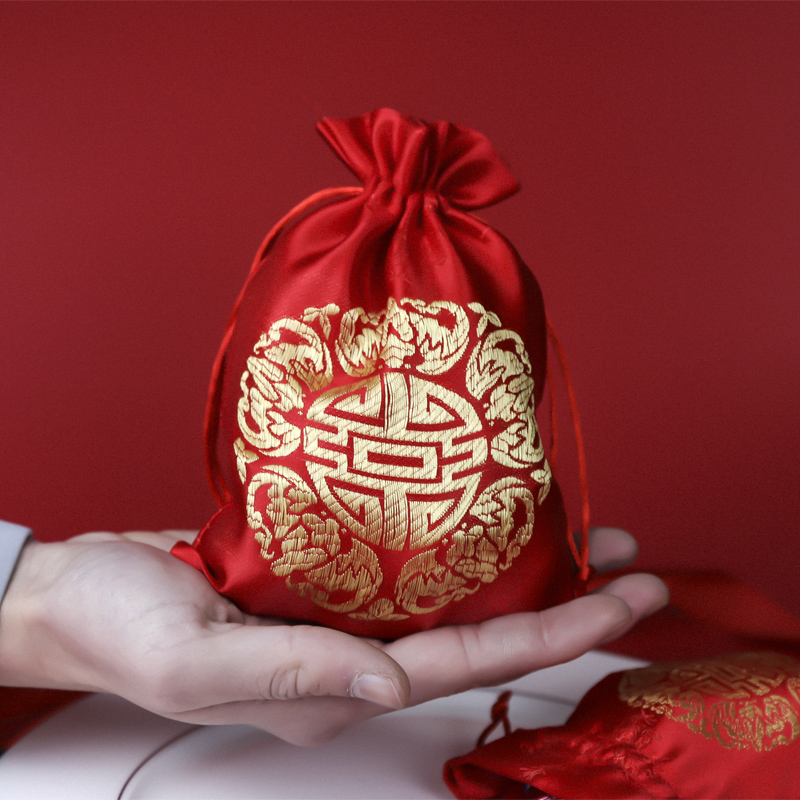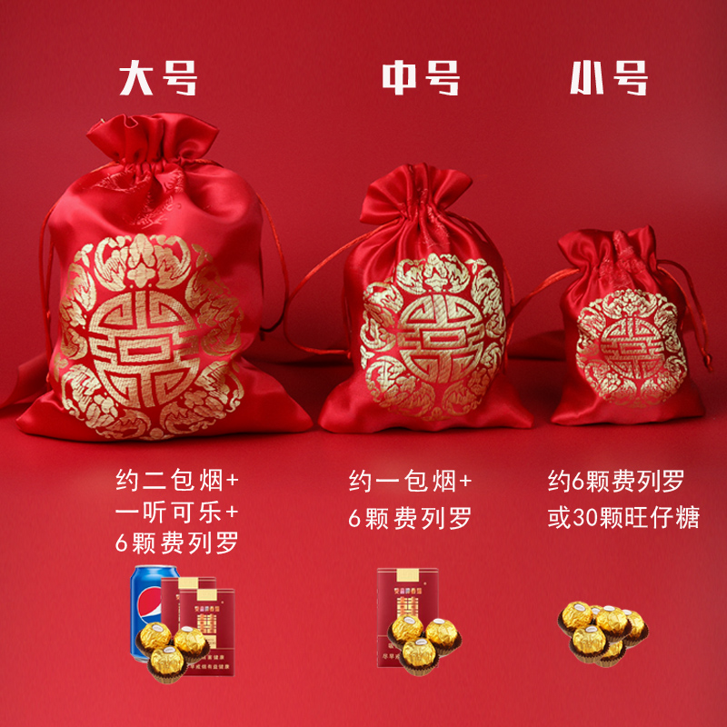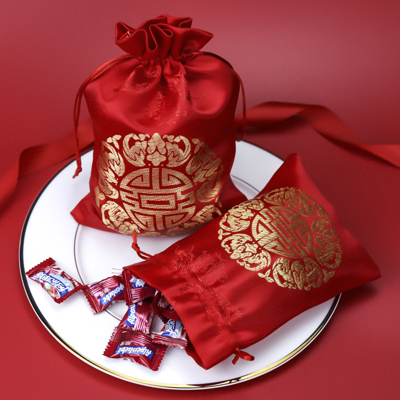 婚庆用品创意婚礼伴手礼织锦结婚喜糖袋盒种号糖果回礼手提布袋子