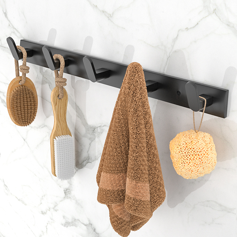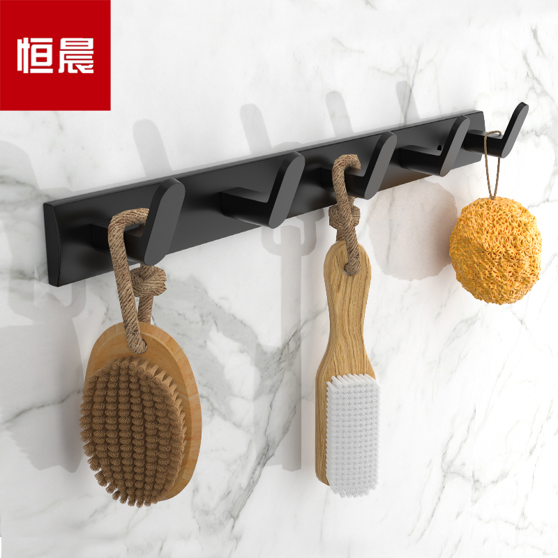 免打孔浴室毛巾挂钩排钩壁挂墙壁黑色挂衣钩进门玄关粘钩卫生间