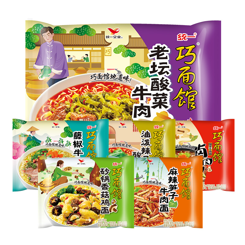 统一方便面泡面速食夜宵巧面馆袋面泡椒麻辣藤椒红烧24袋整箱装