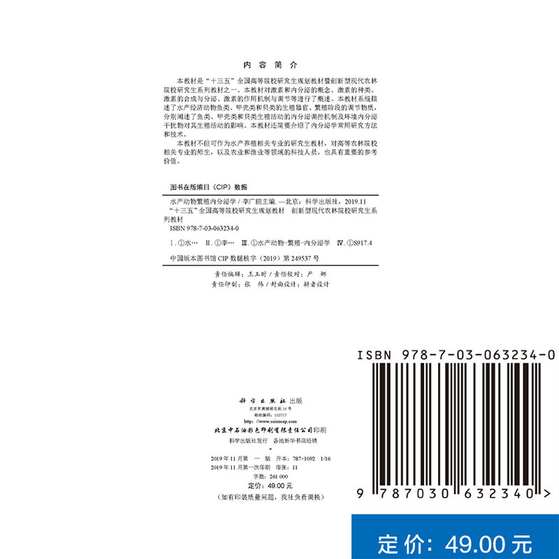 现货 社 水产动物繁殖内分泌学十三五高等院校研究生规划教材创新型现代农林院校研究生系列教材科学出版