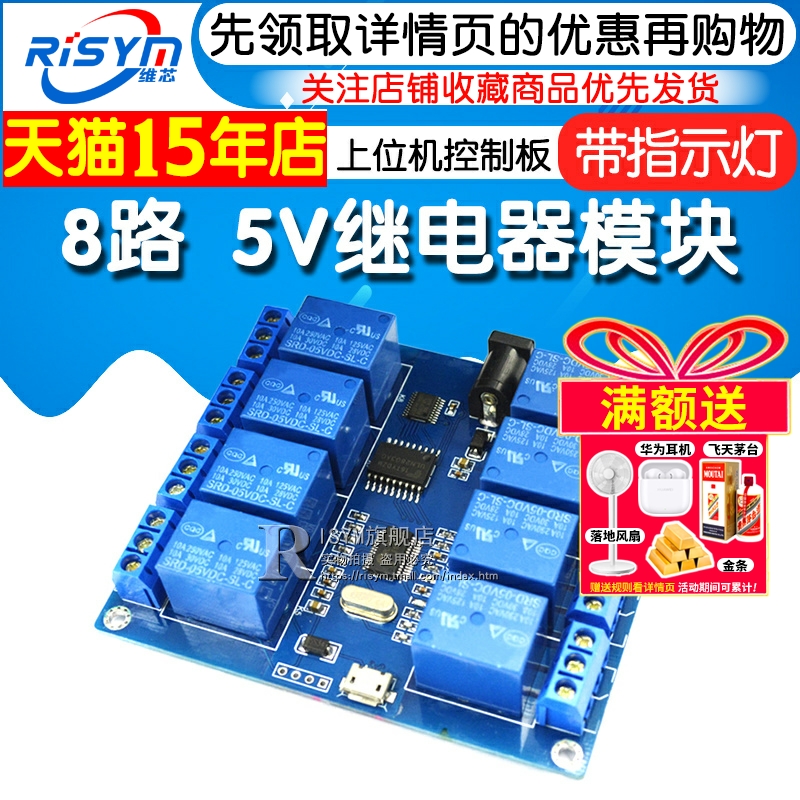 上位机控制板 USB输出接口扩展电路板 5v继电器模块 8路